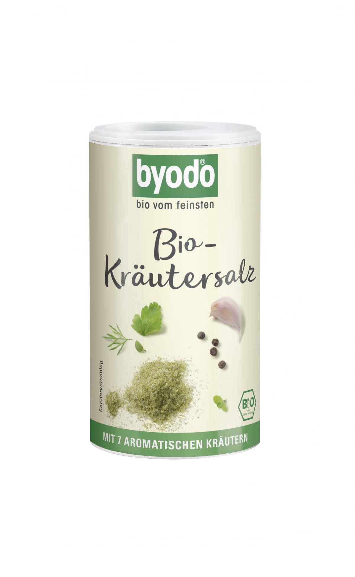 Das feinkörnige Byodo Bio-Kräuter Salz enthält ganze 15% schonend getrocknete Bio-Kräuter wie u.a. Kerbel, Petersilie, Liebstöckel und Oregano. Mit seinem wunderbar intensiven Geschmack und der grünen Farbe bringt es den heimischen Kräutergarten auf den Teller und unterstreicht den Eigengeschmack vieler Speisen.